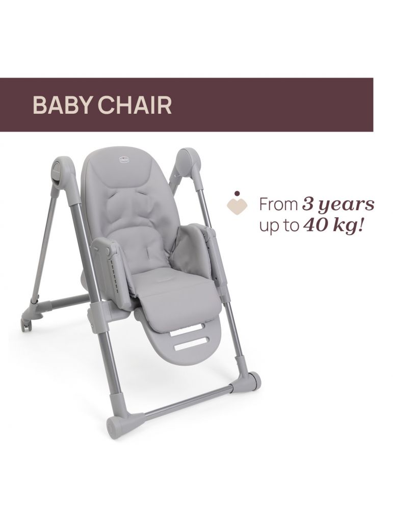 - Komfort od urodzenia aż do 40 kg. Produkt 3w1: leżaczek dla niemowląt, krzesełko do karmienia i krzesło dla starszych dzieci.