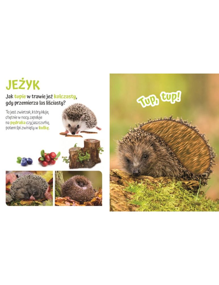 Książka zawiera rymowane pytania dotyczące głosów zwierzątek oraz ciekawe wierszyki, z których mały czytelnik dowie się, nie tylko jakie nazwy noszą rodzice zwierzątek, lecz także, co zwierzątka lubią jeść, a co im sprawia przyjemność. Najważniejsze słowa zostały wyróżnione kolorami. Każdy maluszek z pewnością chętnie sprawdzi, jakie w dotyku są jeż, lis lub sarenka!