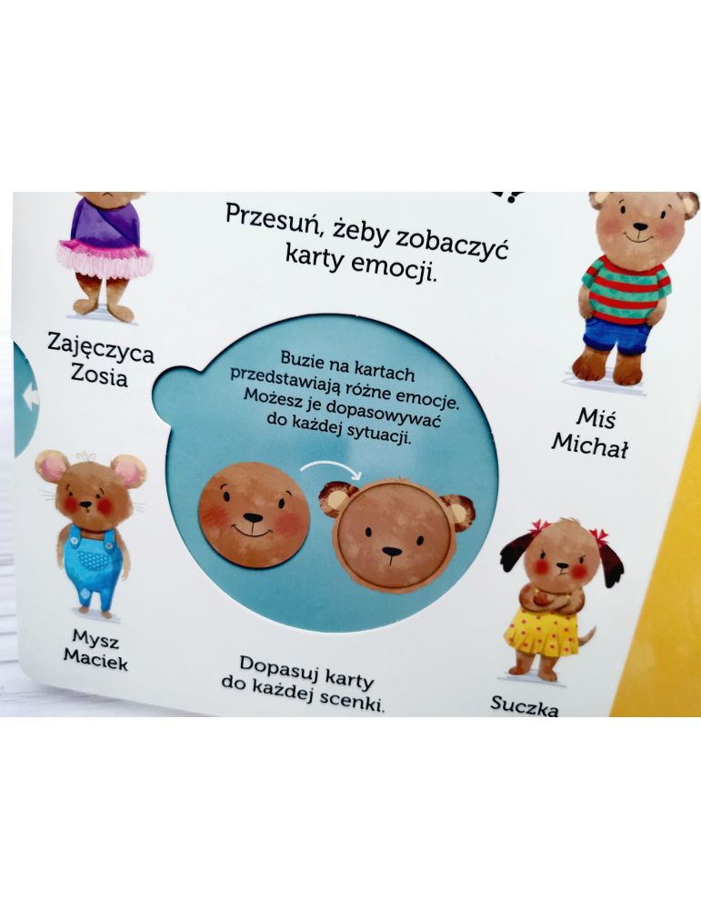 Książeczka Co czujesz Akademii Mądrego Dziecka to kolejna pozycja z serii Mój Świat. Na kolorowych, kartonowych stronach, mały czytelnik dowie się, co to są emocje, nauczy się je rozpoznawać oraz nazywać. Do książeczki dołączone są 4 karty - buźki z emocjami i uczuciami: radość, smutek, złość i podekscytowanie. Nasz bohater miś wraz ze swoimi przyjaciółmi pojawia się na kartkach książki w różnych sytuacjach, które mogą spotkać każdego maluszka. Raz miś jest u lekarza na badaniach, innym razem w przedszkolu z przyjaciółmi lub na placu zabaw bawiąc się z kolegami i koleżankami. Za każdym razem młody czytelnik musi odgadnąć, która emocja czy uczcie towarzyszy jednemu z przyjaciół misia. Pomocne w tym będą dołączone karty emocji. Trzeba wybrać odpowiednią buźkę i włożyć w odpowiednie miejsce na stronie. W serii Mój Świat pojawiły się dotychczas: Spójrz jak rosnę, Kolorowy nocnik oraz Kocham Cię mamo!