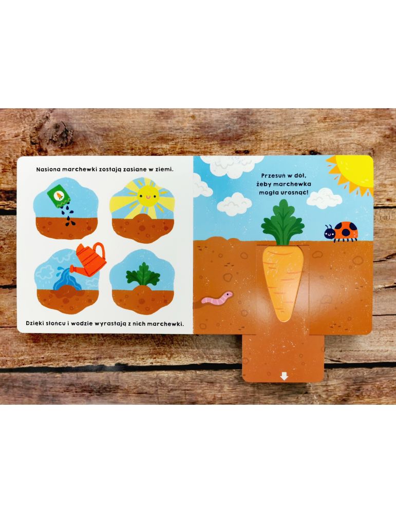 W serii Mój Świat Akademii Mądrego Dziecka pojawiła się nowa pozycja pod tytułem Spójrz jak rosnę. Kartonowa książeczka pokazuje małemu czytelnikowi jak rosną roślinki i zwierzęta. Dzięki ruchomym elementom poznajemy cykl życia żabki, możemy zaobserwować jak ze skrzeku rozwija się kijanka, a następnie młoda żabka. Dowiadujemy się także, jak mówi się na małą owieczkę, świnkę, krowę czy kurę. Maluszek może zobaczyć, jak sadzi się marchewkę, a następnie zaobserwować jak ona rośnie. Dowie się także, z jakiego kwiatu wyrasta owoc jabłuszka oraz zobaczy jak rolnik sieje ziarna, z których wyrasta pszenica. W książeczce Spójrz jak rosnę pokazane są rośliny, które można zasadzić w ogródku oraz przydomowej szklarni. Tytuły, które polecamy w serii Mój Świat: Co czujesz, Kolorowy nocnik oraz Kocham Cię mamo!