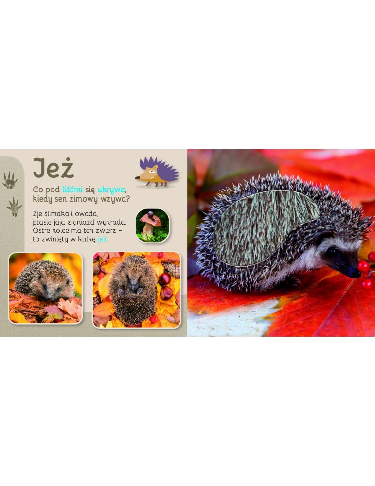Urocza książeczka dla maluszków o ZWIERZĄTKACH LEŚNYCH. Dzięki niej dziecko DOTKNIE zwierzątek, przekona się, jakie są MIĘCIUTKIE, a także pozna ich NAZWY i GŁOSY. Książka zawiera RYMOWANE PYTANIA dotyczące głosów zwierząt oraz ciekawe WIERSZYKI, z których mały Czytelnik dowie się, nie tylko jakie nazwy noszą ZWIERZĘTA, lecz także, co one lubią JEŚĆ i jakie mają ZWYCZAJE. Najważniejsze słowa zostały WYRÓŻNIONE kolorami. Każdy maluszek z pewnością chętnie sprawdzi, jakie w DOTYKU są JEŻ, LIS lub SARENKA!