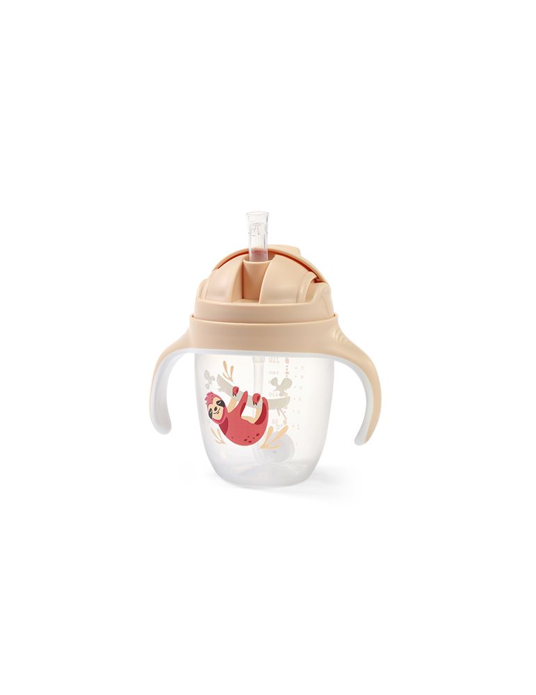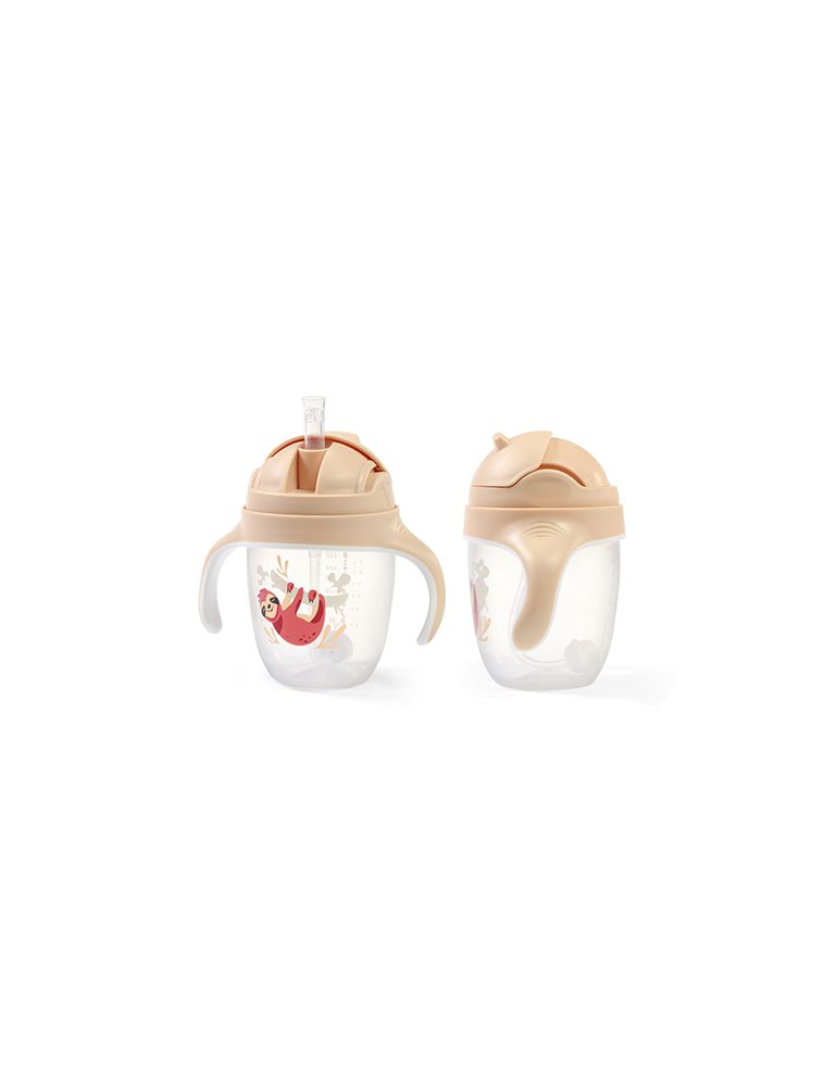 BabyOno Kubek niekapek z obciążoną słomką 240ml beżowy