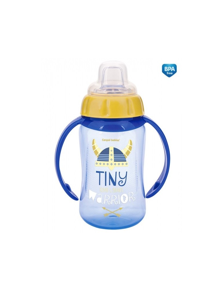 Doskonały kubek dla dzieci rozpoczynających naukę samodzielnego picia. Jest świetny zarówno do przepajania dziecka, jak również do samodzielnego picia. Posiada specjalnie wyprofilowany kształt ułatwiający trzymanie podczas pojenia, jak również wygodne, szerokie uchwyty służące do samodzielnego trzymania w malutkich rączkach smyka. Po zdjęciu uchwytów kubek może pełnić funkcję bidonu dla starszych dzieci. Miękki, silikonowy ustnik nie podrażnia delikatnych dziąseł i pierwszych ząbków dziecka, skutecznie pomaga w nauce picia chroniąc przed rozlewaniem. Szeroka szyjka pozwala na wygodne napełnienie i mycie, a szczelna osłonka chroni ustnik przed zabrudzeniem.