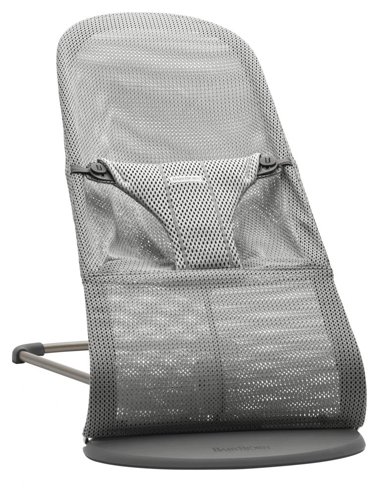 Leżaczek Bliss to lekki i poręczny leżaczek dla niemowląt z szarą ramą i siedziskiem z pikowanej bawełny, supermiękkiego dżerseju 3D lub przewiewnej siateczki.