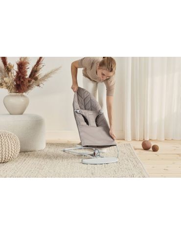 Dzięki dwustronnemu poszyciu leżaczek BABYBJÖRN Bliss może być użytkowany zarówno jako leżaczek jak i fotelik. Leżaczek jest idealnym rozwiązaniem od okresu niemowlęcego do momentu, w którym dziecko nauczy się stabilnie siedzieć. Dla starszych, już chodzących dzieci leżaczek można łatwo przekształcić w wygodny fotelik - wystarczy zdjąć i odwrócić materiał z oparcia oraz zmienić jego stopień nachylenia.