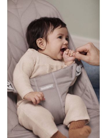 Leżaczek BabyBjorn zapewnia Twojemu dziecku przytulne miejsce do zabawy i odpoczynku. Porusza się dzięki naturalnym i spontanicznym ruchom dziecka. Dziecko bujając się rozwija zdolności motoryczne oraz równowagę w całkowicie naturalny dla siebie sposób. Młodsze dziecko można delikatnie i cicho kołysać ręką lub stopą.