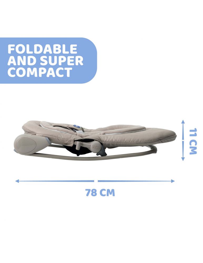 Możliwość ustawienia oparcia w 4. różnych pozycjach dostosowanych do potrzeb dziecka. Dzięki dwóm bocznym przyciskom ustawianie oparcia jest łatwe i szybkie. Możliwość ustawienia blokady funkcji bujania.