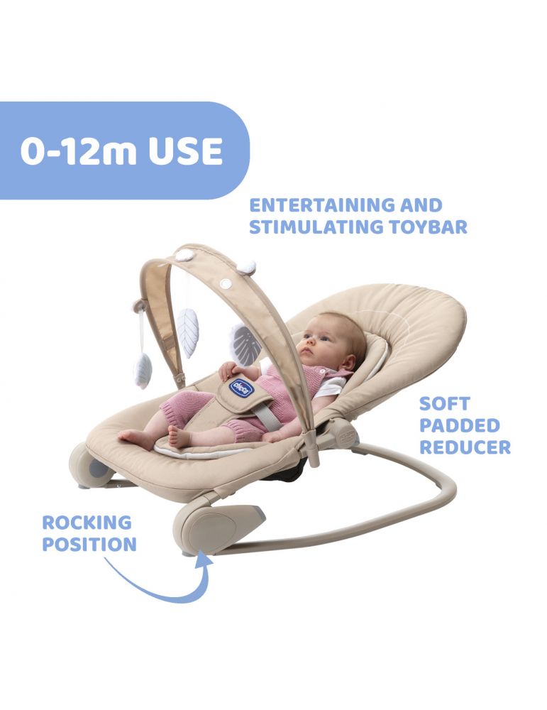 - Leżaczek może być używany w trybie stałym lub kołyszącym.