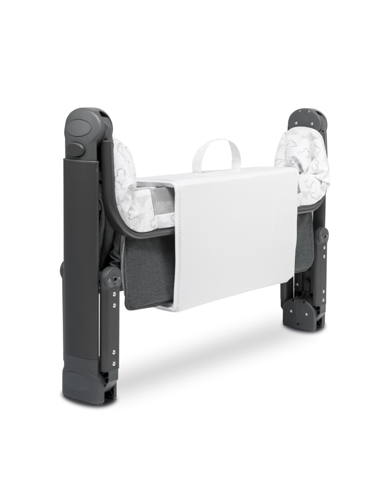 Niezwykle wygodne składanie łóżeczka do małych rozmiarów sprawia, że jest łatwiejsze w transporcie i przechowywaniu.