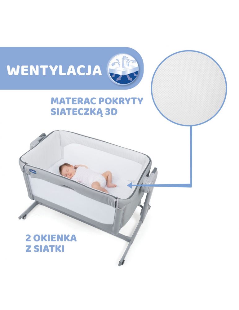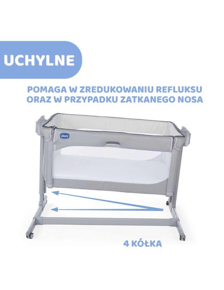 Chicco Next2Me to dostawka do łóżka dla noworodka i niemowlaka, dzięki której zarówno rodzice, jak i dziecko, mogą spać spokojniej. Maluszek śpi w swoim łóżeczku, ale jest wciąż blisko rodziców. To odpowiedź na często pojawiającą się wątpliwość: czy dziecko powinno spać w swoim łóżeczku, czy też w łóżku z rodzicami?