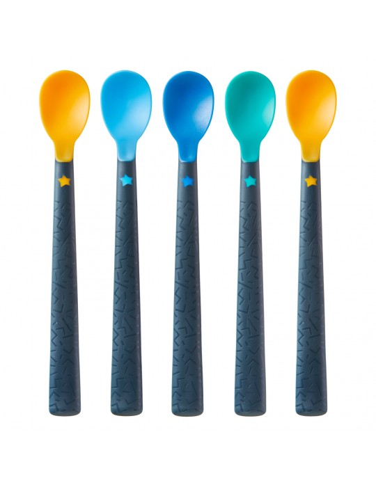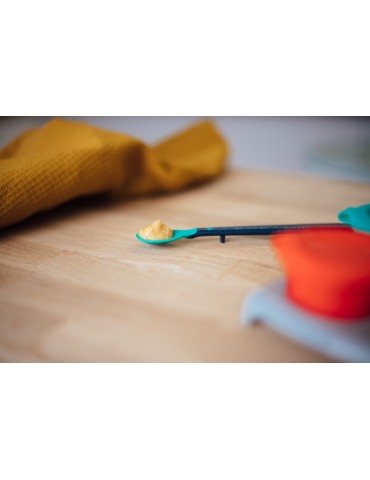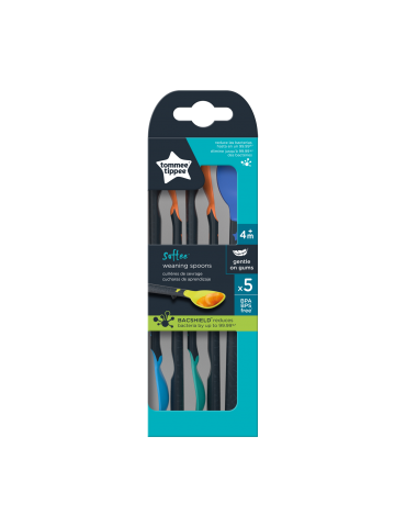 Podczas karmienia ze słoika lub pojemnika łyżeczki z krótką rączką mogą się brudzić, dlatego łyżeczki do karmienia mają długie uchwyty, dzięki czemu można łatwo nabierać pokarm. Dodatkowo antypoślizgowe uchwyty ułatwiają oparcie łyżki o miseczkę bez obawy, że wślizgnie się ona do potrawy. Mając na uwadze higienę wyposażono łyżeczki w wypustki, które ograniczają kontakt pokarmu z powierzchnią oraz ochronę Bacshield™, która zapobiega rozwojowi bakterii. Ponadto łyżeczki są wolne od BPA, BPS, PVCS, ftalanówi nitrozoaminy.