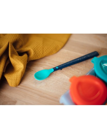Ta sprytnie zaprojektowana łyżeczka do karmienia, jest tym czego potrzebujesz podczas wprowadzania pierwszych pokarmów stałych. Wyjątkowo miękka końcówka łyżeczki pozwala na delikatne wprowadzanie jedzenia do ust dziecka. Kiedy po raz pierwszy karmisz dziecko, możesz zdejmować jedzenie tylko z łyżeczki, więc jeśli łyżeczka jest zbyt twarda, całość nie trafia do buzi dziecka. Dlatego zaprojektowano wszystkie łyżeczki tak, aby były wystarczająco miękkie, aby język dziecka dotykał łyżki, delikatnie wprowadzając pokarm do ust. Najedzone dziecko, to szczęśliwe dziecko i szczęśliwa mama.