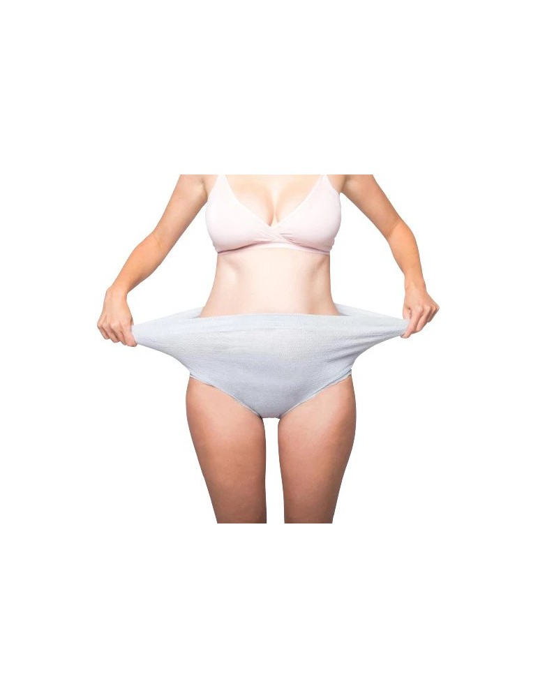 Jednorazowe majtki poporodowe z wysokim stanem, dla kobiet po cięciu cesarskim. Elastyczna, bezszwowa bielizna regeneracyjna, pomagająca utrzymać podkłady poporodowe na właściwym miejscu.