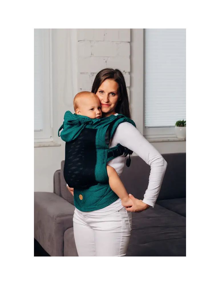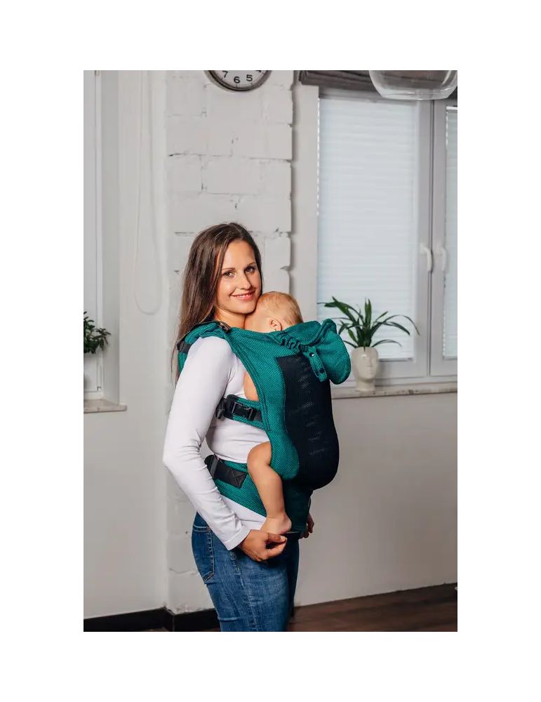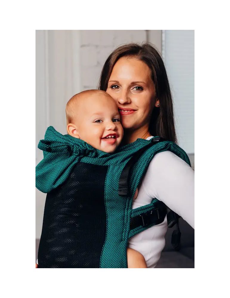 LennyLamb Nosidełko siatkowe ergonomiczne LennyGo z tkaniny jodełkowej Baby Emerald