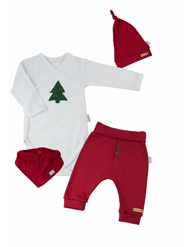 Nicol komplet body+spodnie+czapka+apaszka choinka 56-68