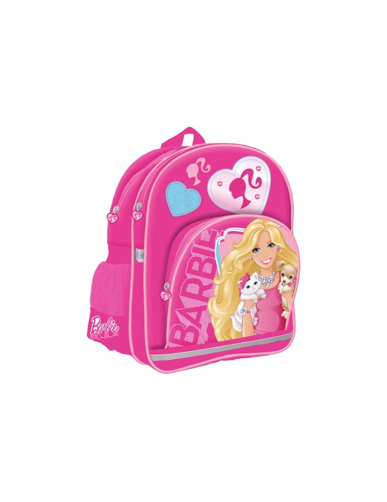 PLECAK SZKOLNY 2komorowy z usztywnianymi plecami oraz miękkimi szelkami, posiada odblaski na szelkach oraz froncie. Całość wykonana z poliestru. Zamki zakończone ozdobnymi zawieszkami. Kieszonka na zamek na przodzie oraz 2 siateczkowe z boku plecaka.