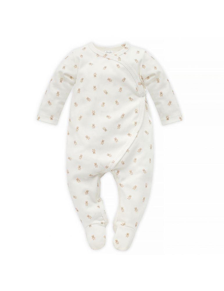 Pajac wykonany z delikatnej, mięciutkiej bawełny, starannie uszyty. Posiada napki przez całą długość oraz w kroku pozwalające na szybkie, sprawne przewinięcie i przebranie dziecka. Z tej serii można dokupić również inne ubranka.