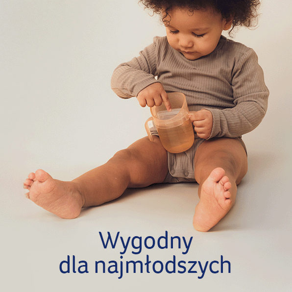 Doskonały pierwszy kubek. Mały rozmiar - 130 ml gdy kubek jest używany z wkładką — oraz ergonomiczne uchwyty powodują, że kubek treningowy LOVI Genius Nude idealnie sprawdzi się na początku nauki korzystania z kubeczka. Może być używany przez dzieci, które ukończyły 6 miesiąc życia i samodzielnie siedzą.