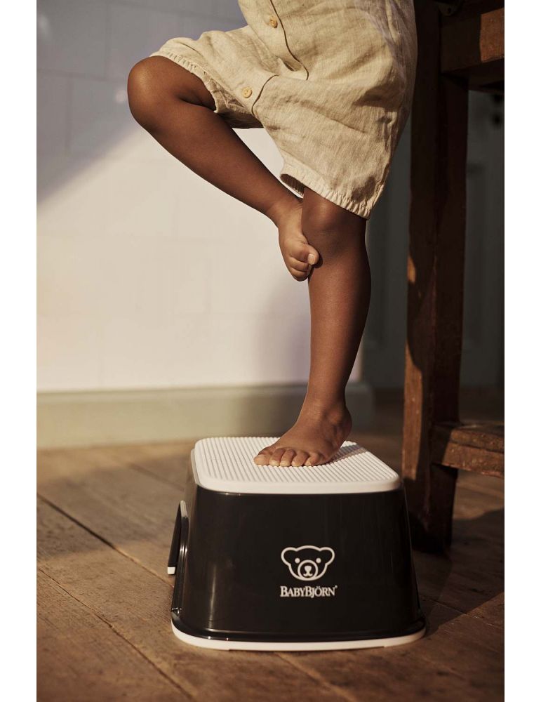 Podest BABYBJÖRN zapewnia dziecku bezpieczne wsparcie, gdy sięga do umywalki czy toalety. Gumowa, antypoślizgowa powierzchnia oraz stabilna podstawa sprawiają, że maluch może stać na nim pewnie i bez obaw. Dzięki kompaktowym wymiarom i lekkiej konstrukcji idealnie sprawdzi się również w podróży.