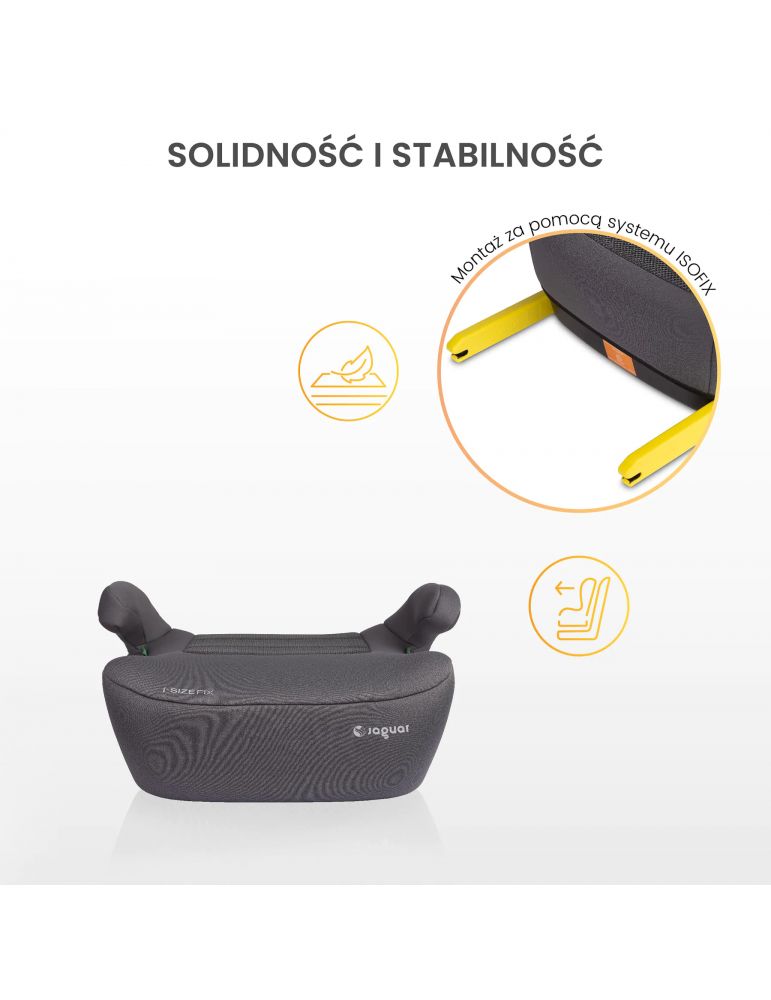 Model Jaguar wyróżnia się przestronnym siedziskiem, które zapewnia komfort podczas podróży. Fotelik pokryty jest miękką, łatwą do zdjęcia i wyczyszczenia tapicerką. Ergonomiczne podłokietniki zwiększają wygodę dziecka, sprawiając, że każda podróż staje się przyjemnością. Dodatkowo, oddychająca siateczka na siedzisku poprawia cyrkulację powietrza, co jest idealnym rozwiązaniem na cieplejsze dni i dłuższe trasy.