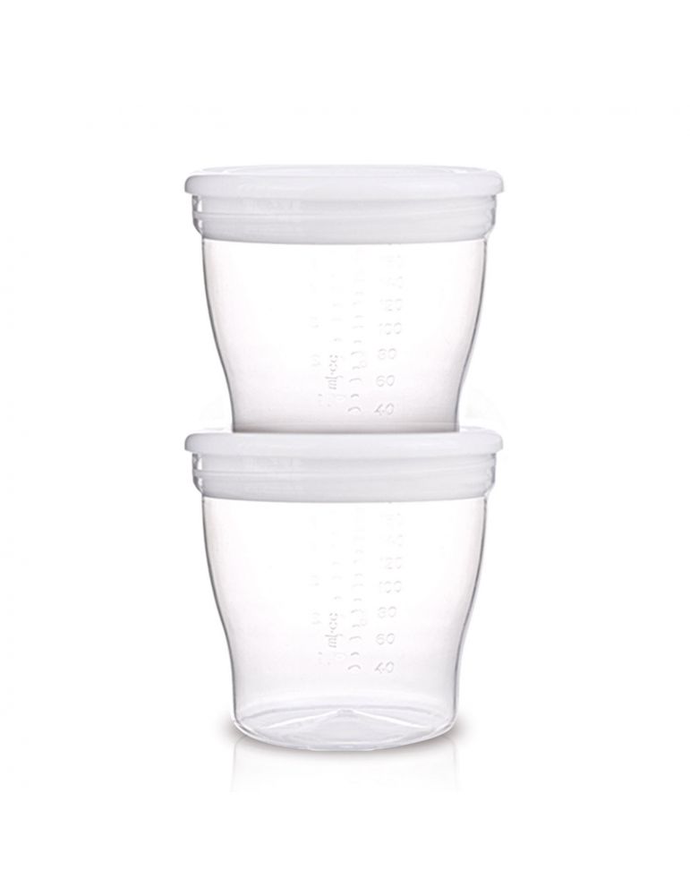 Praktyczne pojemniki umożliwiają długotrwałe przechowywanie pokarmu utrzymując jego wysoką jakość. Posiadają szczelne pokrywki, dzięki czemu nic się z nich nie wylewa nawet gdy pojemnik jest przechylony. Można je ustawić jeden na drugim. Posiadają czytelną skalę. Pokrywka może także pełnić funkcję podstawki - dla lepszej stablizacji przy przelewaniu płynu. Wykonane zostały z materiału przeznaczonego do kontaktu z żywnością. W opakowaniu 4 pojemniki z pokrywkami o pojemności 180ml.