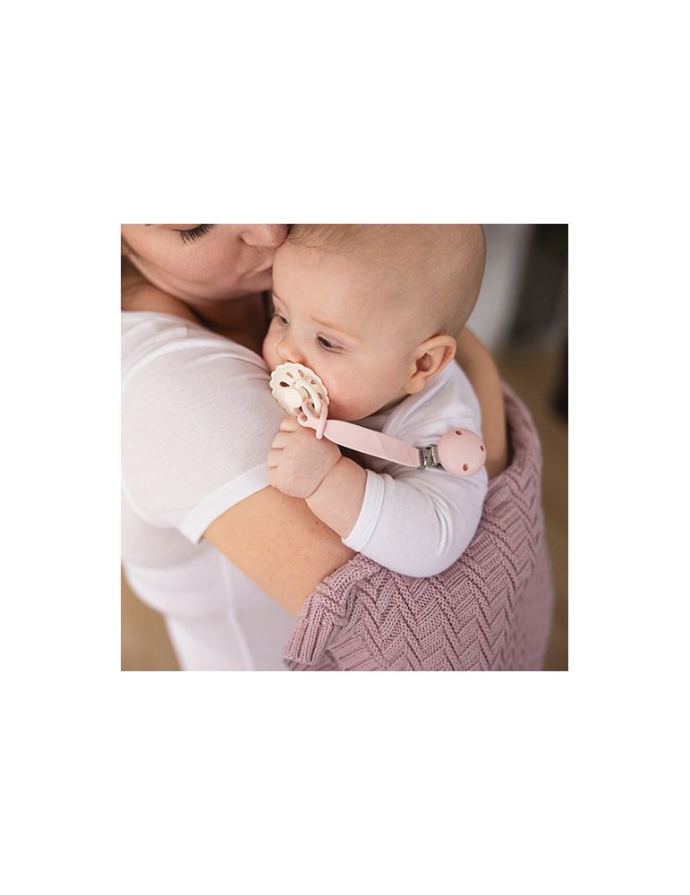 - Klips dobrze trzyma się odzieży i nie niszczy materiału. Posiada silikonową osłonę, która chroni małe rączki. Bardzo łatwo go przypniesz i odepniesz- nawet jedną ręką.