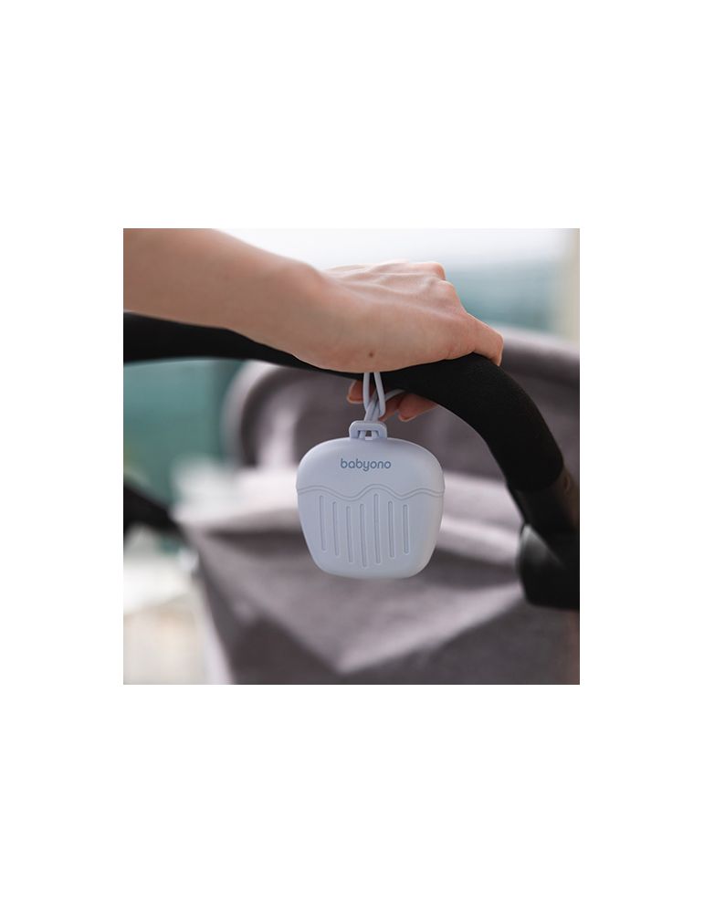W pojemniku zmieścisz dwa standardowej wielkości smoczki. Etui z długim, elastycznym uchwytem przymocujesz do torby, plecaka, wózka czy łóżeczka. Szybko włożysz i wyjmiesz smoczek przez specjalny otwór – nawet jedną ręką.