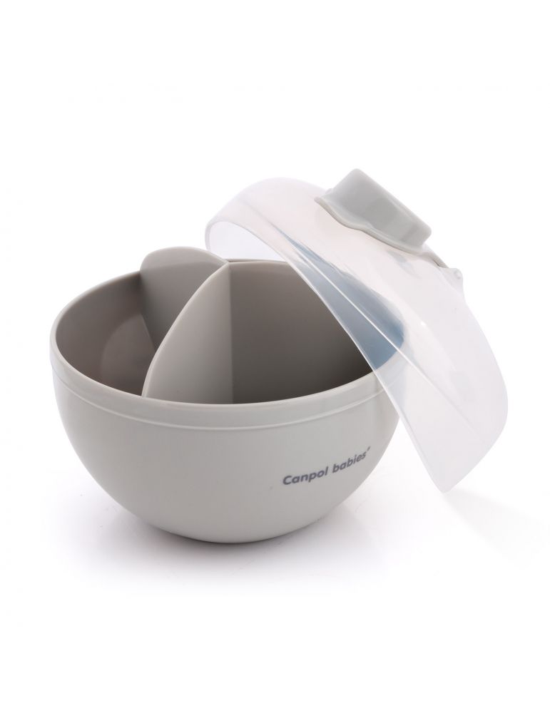 Pojemnik służy do wygodnego przechowywania mleka w proszku. Posiada trzy niezależne komory, dzięki czemu można odmierzyć trzy porcje mleka w proszku, aby przygotować posiłek dla dziecka. Pojemnik sprawdzi się zarówno w domu jak i w podróży. Idealny także do przechowywania przekąsek dla dziecka. Pojemność każdej komory to 90ml- łącznie 270ml.