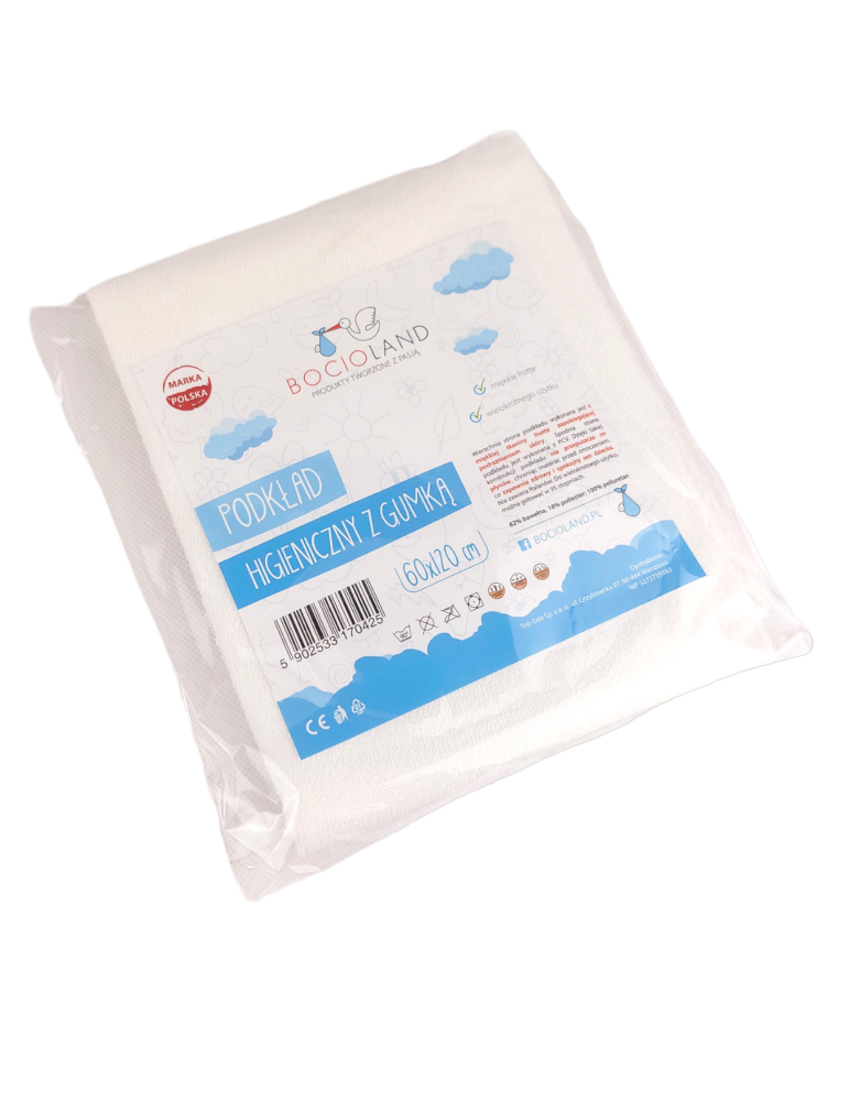 Wierzchnia strona produktu wykonana jest z miękkiej tkaniny frotte zapobiegającej podrażnieniom skóry. Spodnia strona podkładu jest wykonana z PCV. Dzięki takiej konstrukcji podkładu nie przepuszcza on płynów, chroniąc materac przed zmoczeniem, co zapewnia zdrowy i spokojny sen dziecka. Nie zawiera ftalanów.