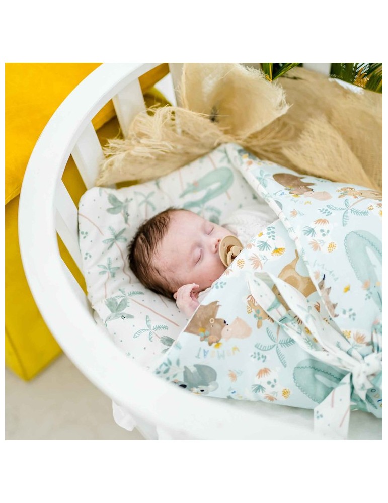 Klasyczny, elegancki rożek niemowlęcy, który otuli dziecko od dnia narodzin. Rożek sprawia, że dziecko czuje się bezpiecznie jak w brzuchu Mamy, a dzięki temu uspokaja maluszka i ułatwia mu zasypianie. Uszyty z najwyższej jakości bawełny, wypełniony dwiema warstwami antyalergicznej bawełny. Pierwsza warstwa to standardowe rożkowe wypełnienie, które jest wystarczająco sztywne, aby pewniej i bezpieczniej trzymać maluszka już od pierwszych chwil. Druga warstwa jest dużo cieńsza i bardziej puszysta. Rożek posiada też wszyte wstęgi, które umożliwiają regulowanie rozmiaru, tak by był idealny dla dziecka.