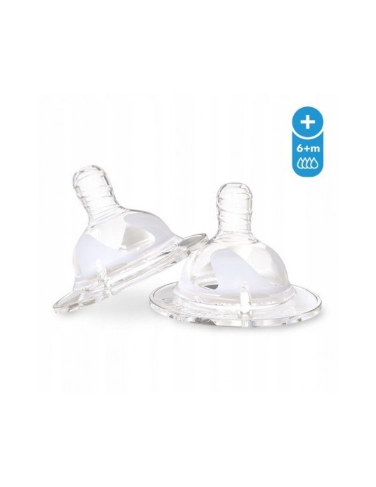 Opakowanie zawiera dwa smoczki w rozmiarze L+ o szybkim przepływie. Idealnie sprawdzą się do kaszki.