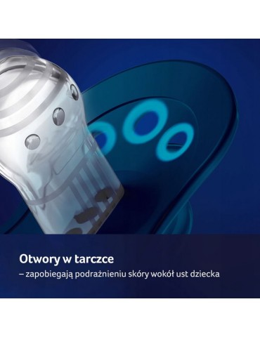 profilowany kształt tarczki umożliwia dziecku swobodne oddychanie przez nos