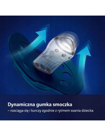 dynamiczna gumka zbudowana z niejednorodnej warstwy silikonu, dzięki czemu rozciąga się i kurczy zgodnie z rytmem ssania dziecka