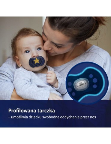 profilowany kształt tarczki umożliwia dziecku swobodne oddychanie przez nos