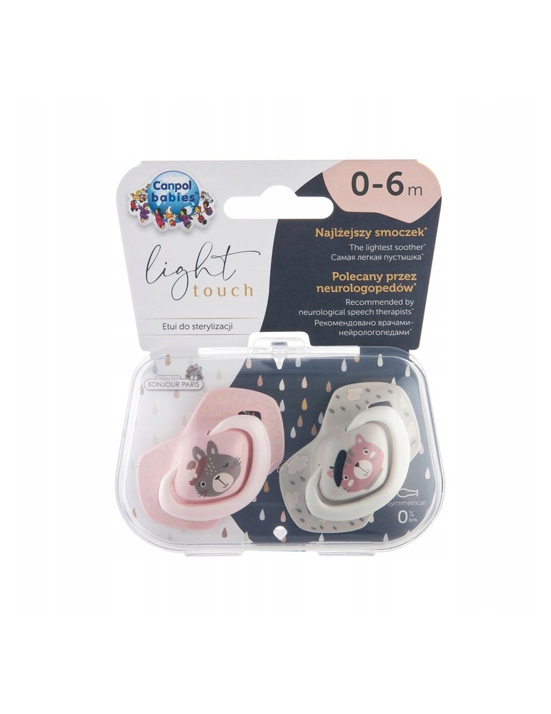 Canpol Babies smoczek silikonowy 18m-cy symetryczny Bonjour Paris 2szt różowy