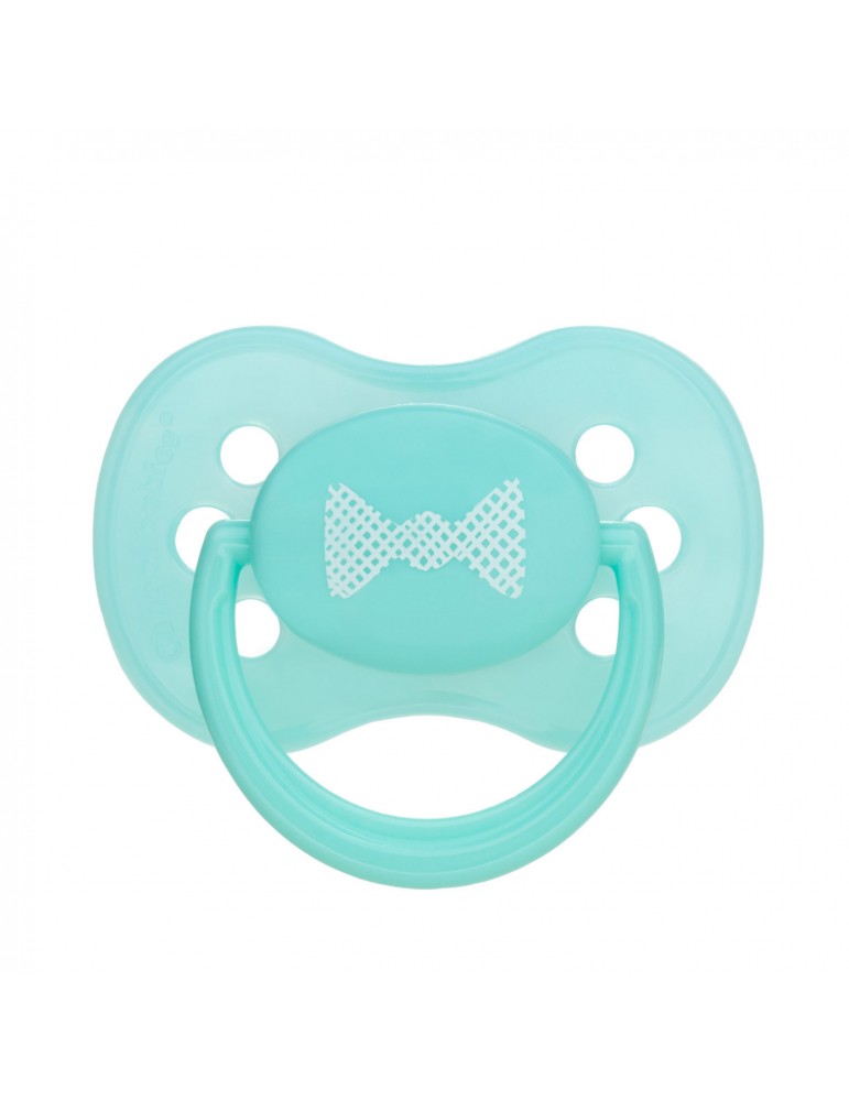 Smoczek uspokajający PASTELOVE wykonany z najwyższej jakości, bezzapachowego i bezsmakowego silikonu. Wyposażony w gumkę o okrągłym kształcie. Zapewnia swobodne oddychanie i połykanie śliny. Dzięki specjalnym otworom wentylacyjnym na tarczce, smoczek nie odparza delikatnej buzi dziecka. Nie zawiera BPA. Dostępny w kilku kolorach. Przeznaczony dla dzieci w wieku 6-18 miesięcy.