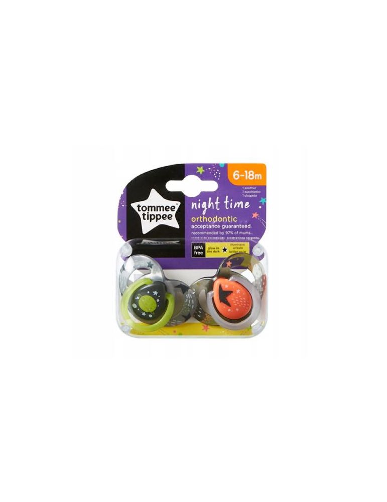 Tommee Tippee Smoczek uspokajający Night time 6-18m szary