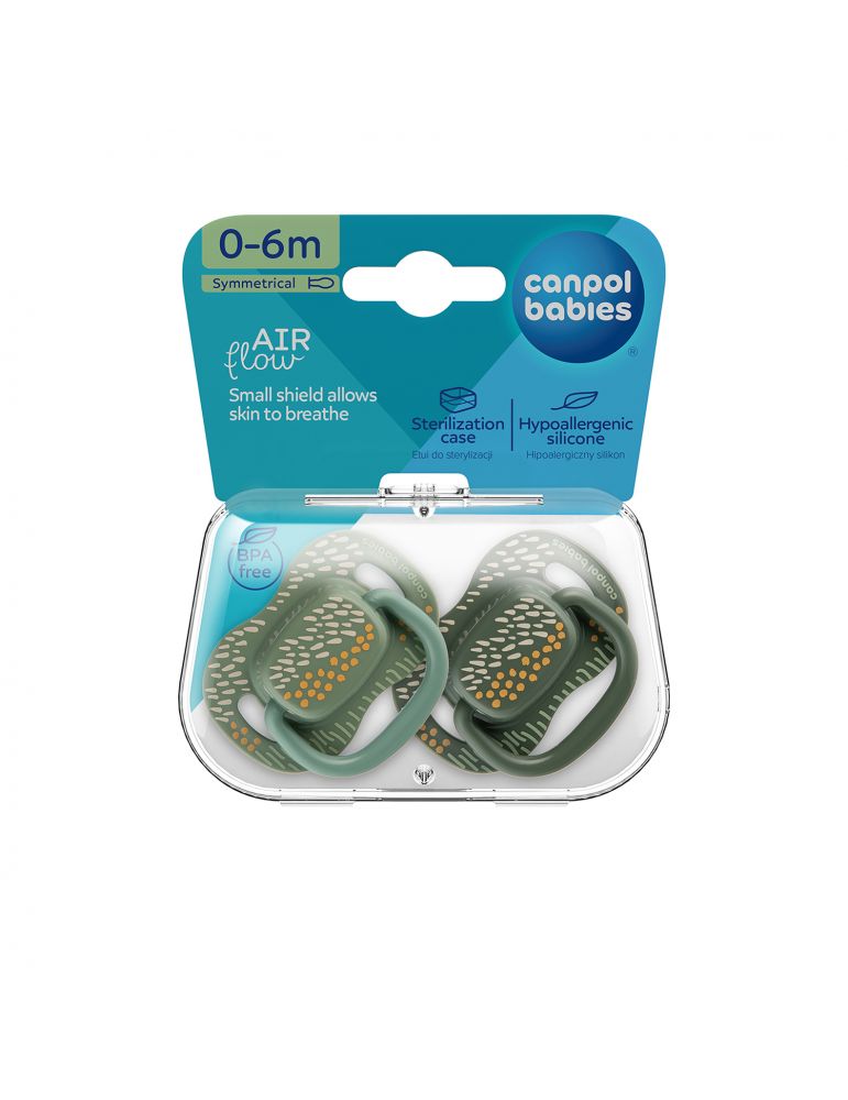 Canpol Babies Smoczek uspokajający silikonowy symetryczny Mounstains 0-6m 2szt. zielone