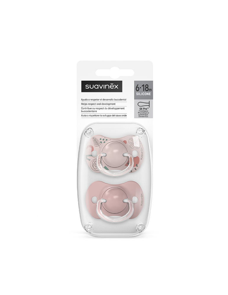 Suavinex smoczek fizjologiczny silikonowy Sx Pro Walk in the park 6-18m+ 2 szt. różowy