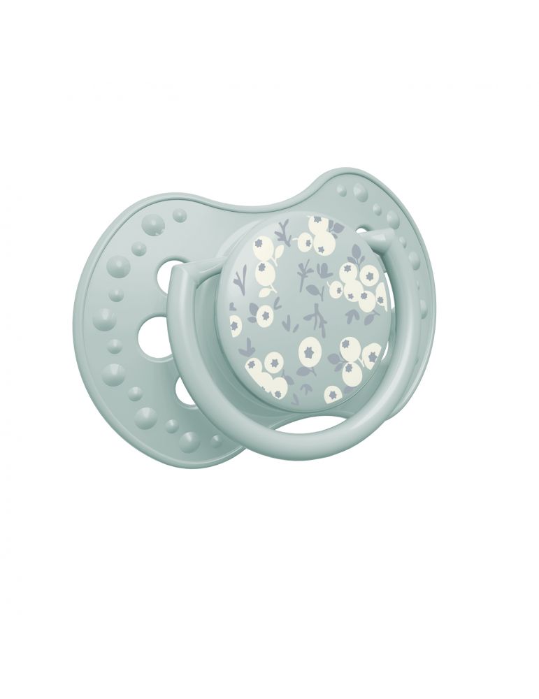 Gumka smoczka wykonana z trwałego silikonu, który nie zniekształca się w buzi dziecka, w trakcie użytkowania.