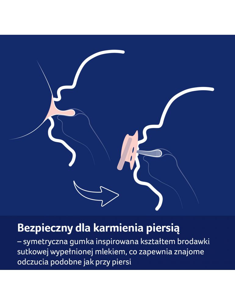 Gumka ma symetryczny kształt inspirowany kształtem brodawki sutkowej wypełnionej mlekiem, co zapewnia dziecku znajome odczucia podobne jak przy piersi.