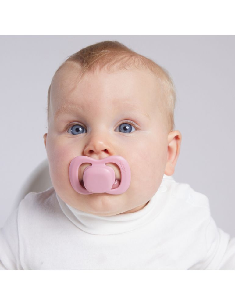 - Unikalny kształt spłaszczony z obu stron – zapobiega wadom zgryzu i może być lepiej tolerowany przez dziecko niż smoczki o innym kształcie.