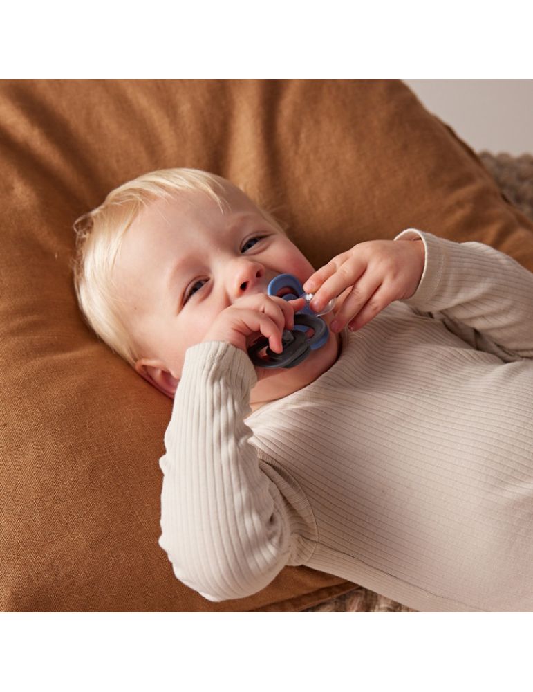 - Unikalny kształt spłaszczony z obu stron – zapobiega wadom zgryzu i może być lepiej tolerowany przez dziecko niż smoczki o innym kształcie.