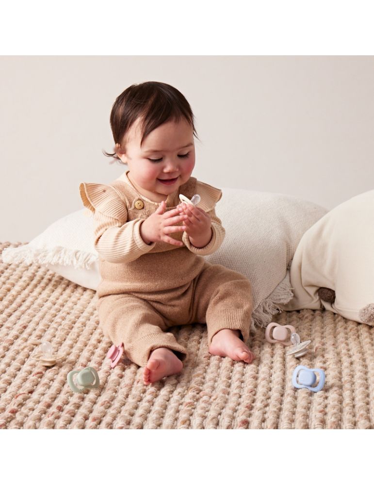 - Unikalny kształt spłaszczony z obu stron – zapobiega wadom zgryzu i może być lepiej tolerowany przez dziecko niż smoczki o innym kształcie.