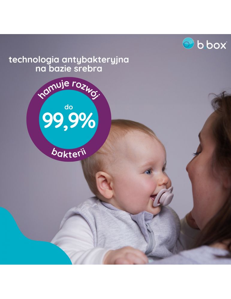 Osłona silikonowego smoczka b.box jest wyposażona w technologię antybakteryjną na bazie srebra, hamującą rozwój do 99,9% zarazków. Każdy smoczek można bezpiecznie sterylizować. Szczelna nasadka ułatwia higieniczne przechowywanie w domu i w podróży. Jeśli szukasz najlepszych smoczków dla dziecka, wybierz te z b.box, które są polecane przez pediatrów i dentystów. Pozwolą maluszkowi na spokojny, nieprzerwany sen, a Tobie na chwilę odpoczynku.