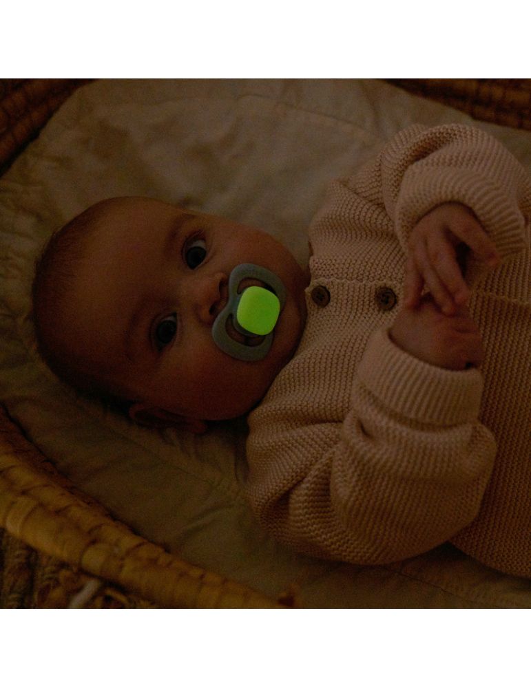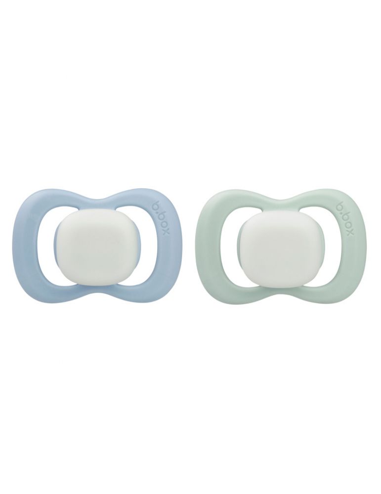 B.Box Smoczek silikonowy symetryczny 0-6m+ glow in the dark błękit/szałwia