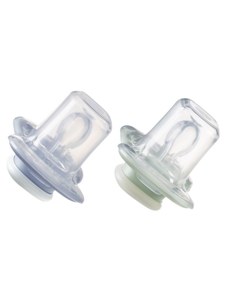 - Zdejmowana osłonka smoczka – zabezpiecza przed zarazkami, a otwory wentylacyjne umożliwiają cyrkulację powietrza wewnątrz, co zapobiega tworzeniu się pleśni.