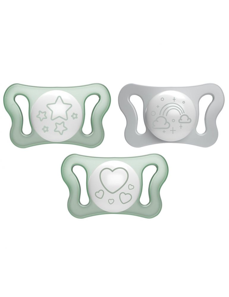 Chicco Smoczek uspokajający silikonowy PhysioForma Micro 0-2m glow int the dark 2 szt.