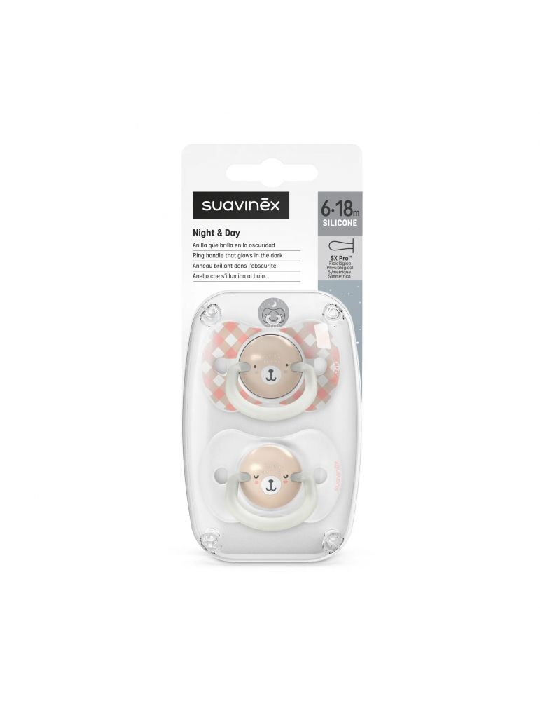 Suavinex smoczek fizjologiczny silikonowy Sx Pro Wild&Free 6-18m 2 szt. świecący różowy