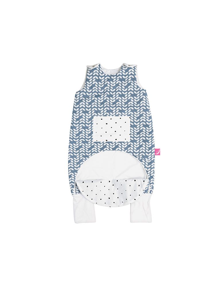 Innowacyjnie wszyty zamek bardzo ułatwia wymianę pieluchy – po jego rozpięciu uzyskujemy komfortową przestrzeń, niespotykaną w innych modelach śpiworków z nogawkami. To pierwszy tego typu śpiworek na rynku. Oferuje on jednocześnie komfort swobodnego przemieszczania się (dzięki nogawkom), oraz komfort wyjątkowo nieinwazyjnej wymiany pieluchy (dzięki innowacyjnemu sposobowi wszycia suwaka). Ponadto śpiworek został wyposażony w zawadiacką kieszonkę, w której maluch może umieścić swoje najcenniejsze skarby takie jak przytulanka, czy smoczek i mieć je zawsze w pobliżu.